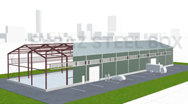 Рассчитаем стоимость удобного склада с двумя воротами и дверьми, который был создан с помощью 3D-конфигуратора на сайте EVRAZ STEEL BOX.